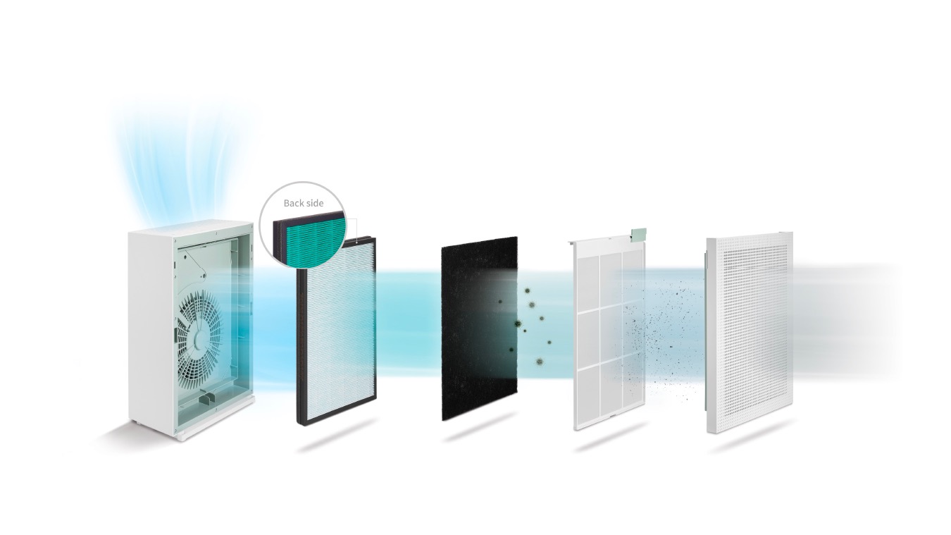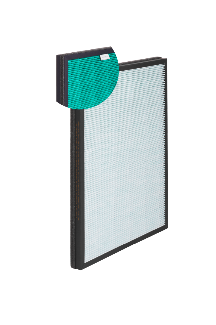 Reduce hasta en un 99,99% la cantidad de partículas finas en el aire, como polen, polvo, pelo de animal y moho.